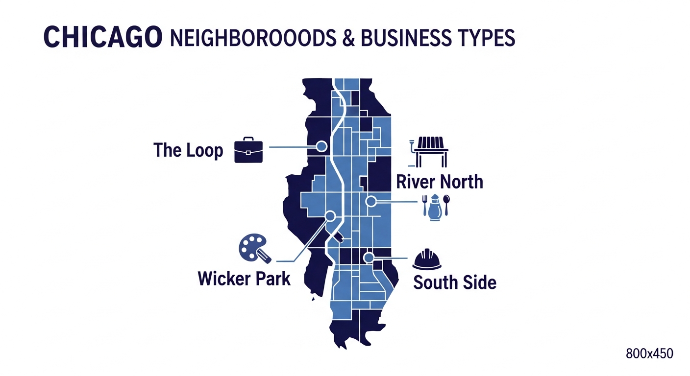 Chicago’s bookkeeping needs vary dramatically by neighborhood and industry cluster. Understanding these patterns helps explain why a bookkeeper who knows Chicago outperforms a generic national service.