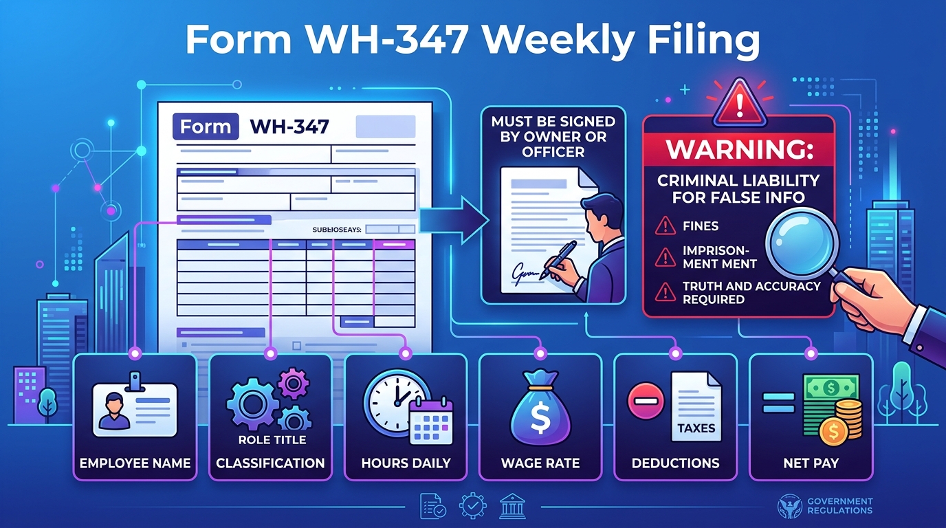Criminal penalties. Knowingly falsifying a certified payroll report is a federal crime punishable by fines and imprisonment. This isn’t a theoretical risk — DOL refers cases to the Department of Justice.
