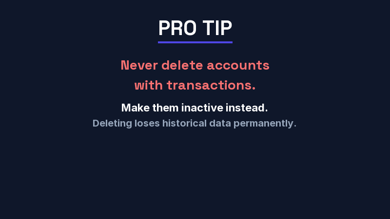 Pro Tip: Run a Profit & Loss report in QuickBooks for the last 12 months. Count the line items. If your P&L has more than 40 expense line items, your COA needs simplification. A clean COA produces a P&L you can read in under 60 seconds.