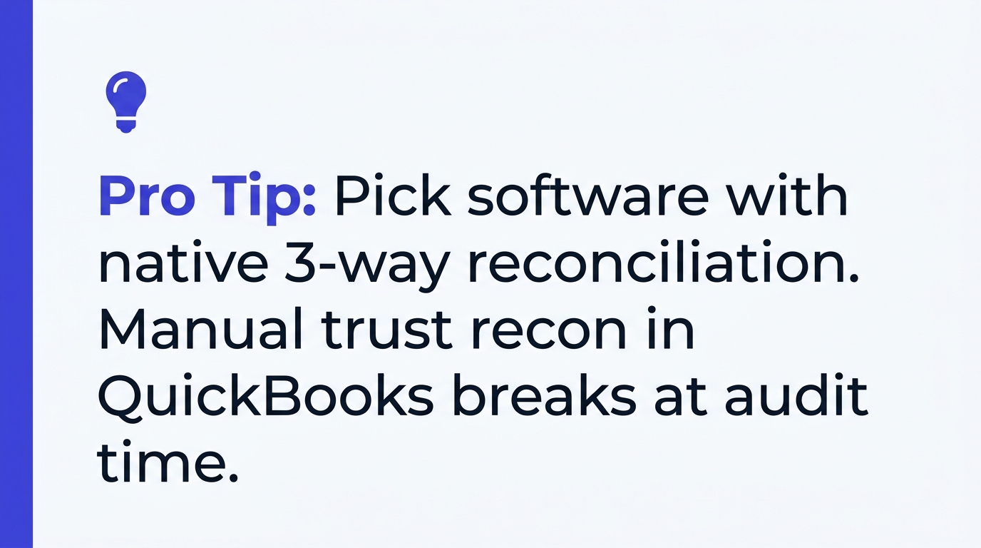 The reconciliation itself should be a physical or digital document — signed, dated, and stored — not just a report that lives transiently inside your software. Many firms print and sign the monthly reconciliation, scan it, and file it in a dedicated compliance folder. If you are ever audited, the existence of signed monthly reconciliations over a multi-year period is often the single most important piece of evidence that your firm takes trust compliance seriously.