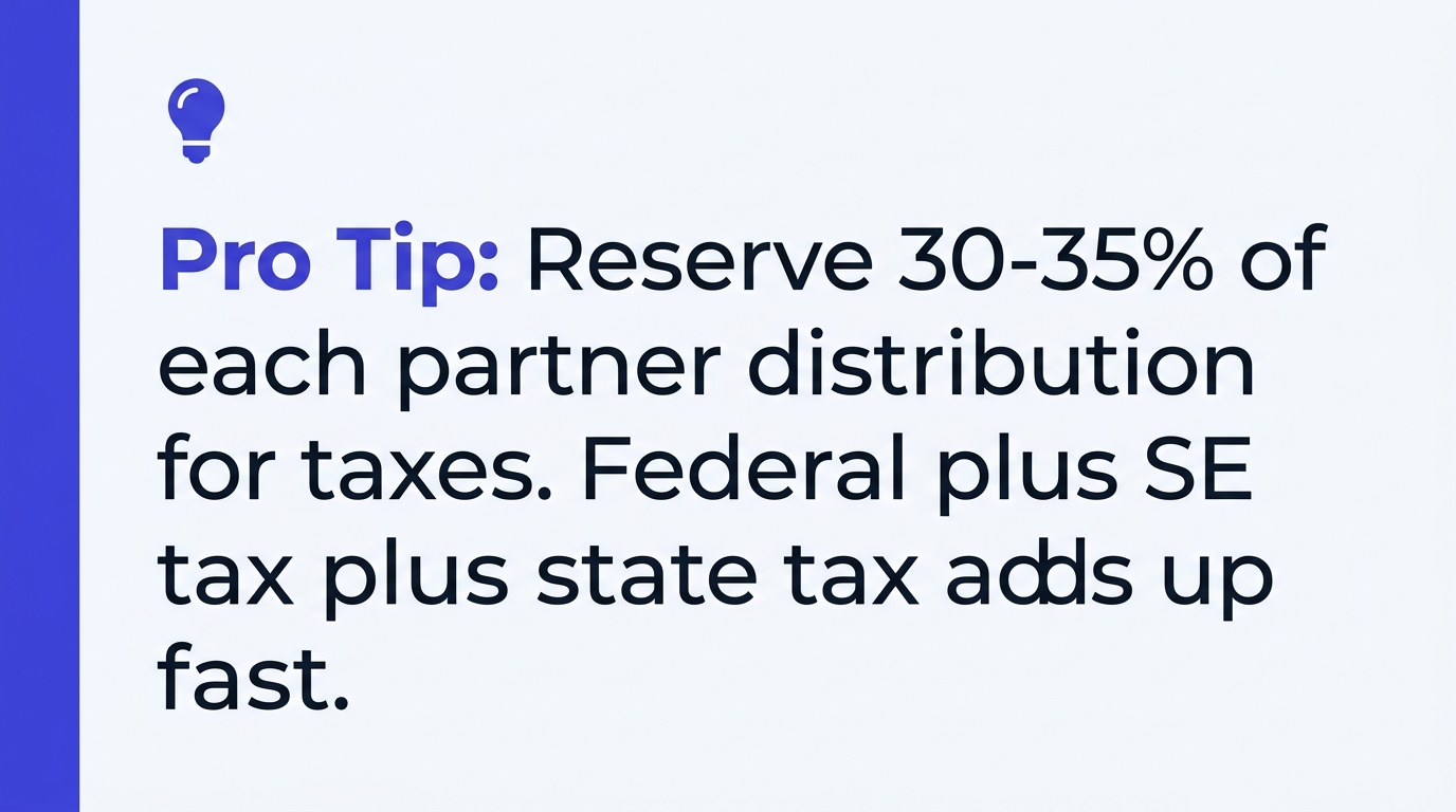 The 30-35% tax reserve rule. Because K-1 income triggers both income tax and self-employment tax, most well-run law firm partnerships hold back 30-35% of every profit distribution specifically for partner taxes. Some firms distribute this directly to partners with a clear "this is for taxes" label. Better-run firms maintain a separate partner tax reserve account — the firm holds the cash and issues estimated tax payments on behalf of partners, or at minimum wire the reserve to partners in line with IRS quarterly estimated tax due dates (April 15, June 15, September 15, January 15).