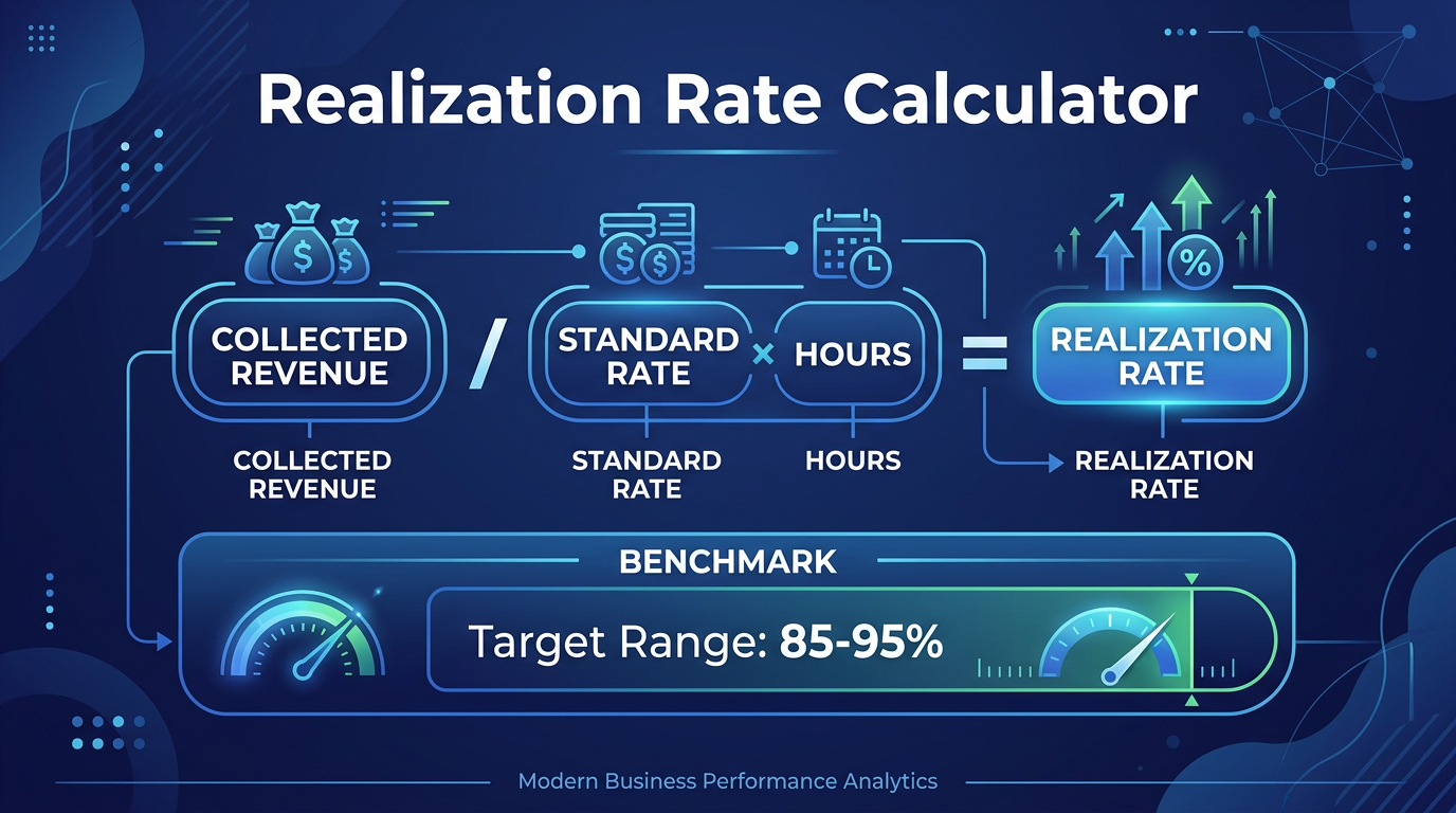 Realization rate measures what you collect versus what you could have collected at standard rates — the single most important profitability metric for hourly-billing firms.