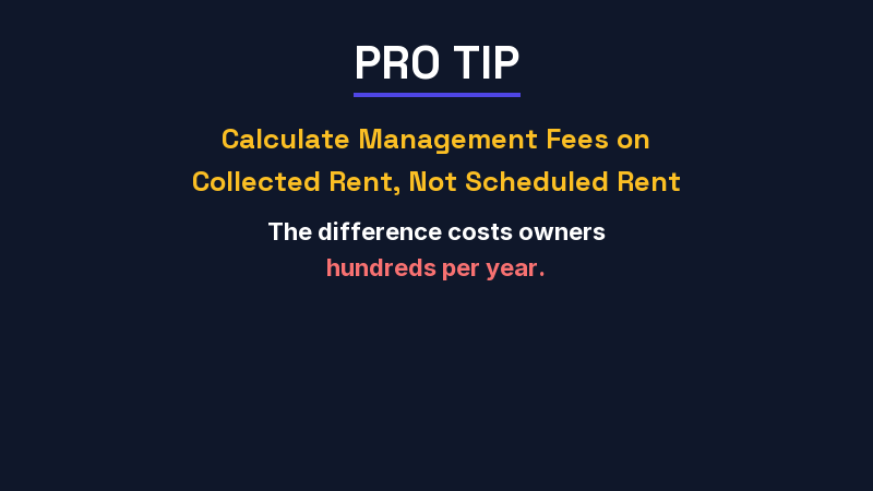 Your management agreement says 8% of collected rent. But your bookkeeping calculates 8% of scheduled rent. On a $2,000 unit that's vacant for two weeks, that's $160 vs. $80 in fees. Owners catch this — especially the ones with accounting backgrounds.
