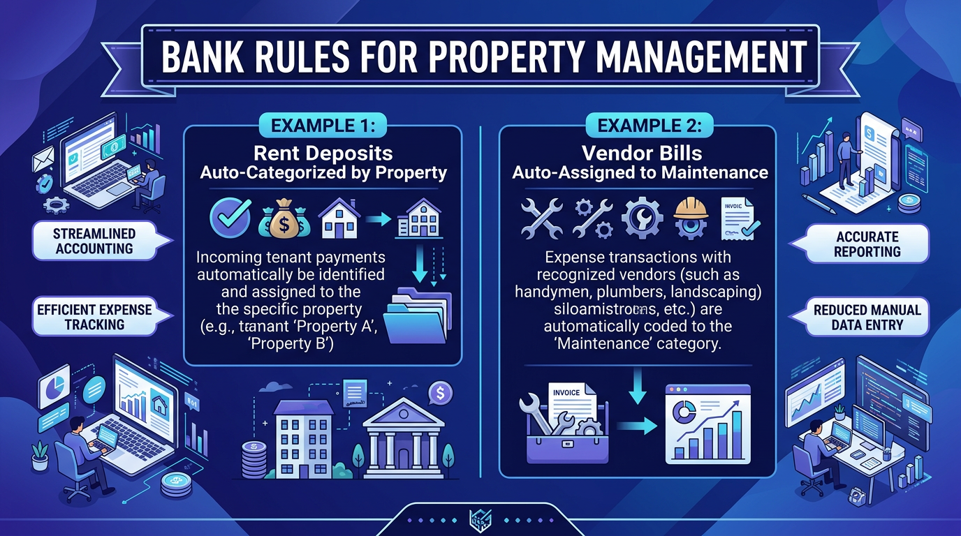 Bank rules automate roughly 60–70% of this work. Here is how to set them up effectively: