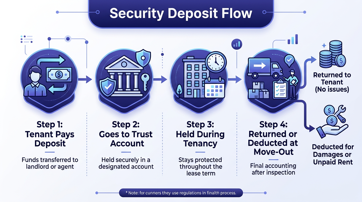 Some states allow you to hold deposits in a single pooled trust account. Others require individual accounts per tenant. A few permit you to post a surety bond instead of holding cash. The rules vary — and getting them wrong is expensive.